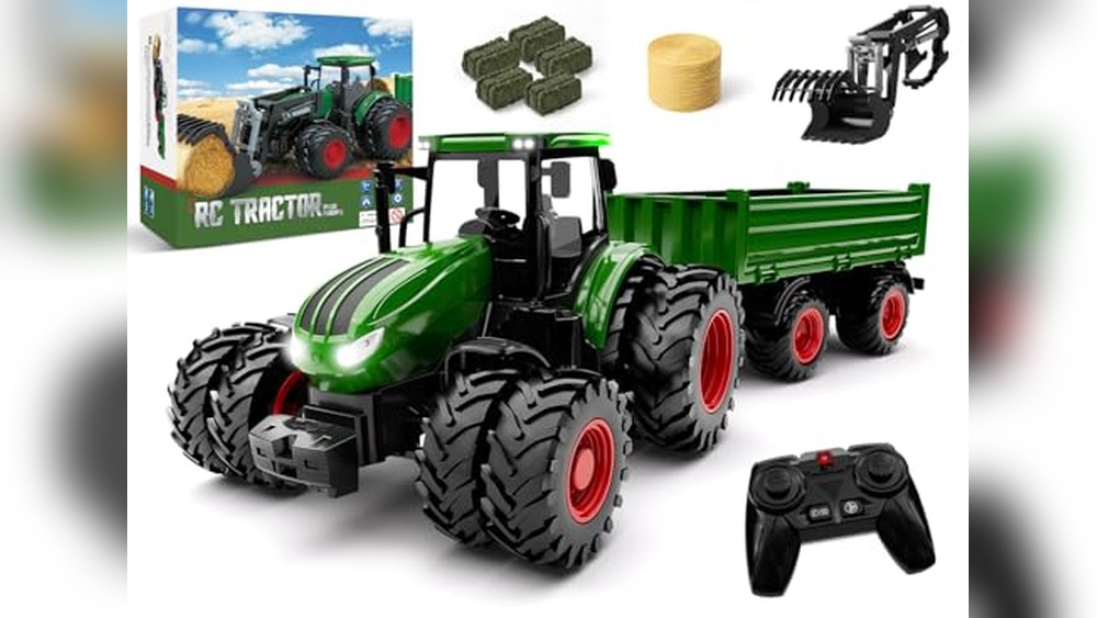 The IJIGU Remote Control Monster Tractor stands out among the best tractor toys for kids, offering an engaging farm-themed play experience with its unique monster truck design and glowing tires.